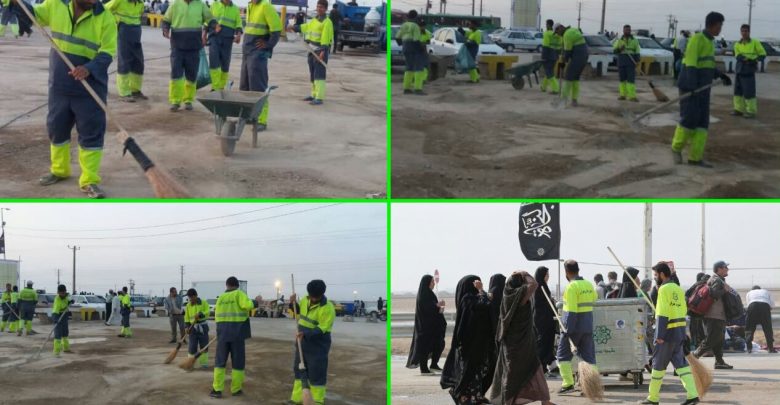 خدامی گفت: با توجه به افزایش جمعیت زائران از سراسر کشور نسبت به سال گذشته و حجم بالای تردد در مرز شلمچه و لزوم ارائه خدمات شهری مطلوب به زائران و شهروندان، با شیفت بندی صورت گرفته به صورت روزانه زبالهها جمعآوری و سطح مسطح مسیر تردد زوار، گیتهای ورودی رفتوروب شده است.
