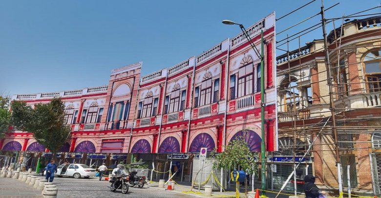بهتر است بگوییم، بنایی زخم خورده که دو سال در یک نایلون مصنوعی پیچیده شده است و روزانه در معرض دید هزاران نفر است، همچنان رخ در پس یک نقاشی رنگ و رو رفته برده و قدم گذاشتن به حریم آن برای افراد متفرقه ممنوع است.
