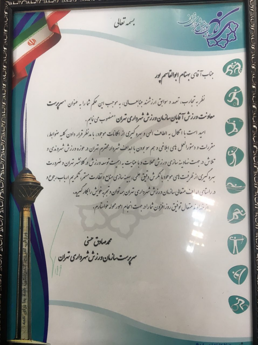 ابوالقاسمپور سرپرست معاونت ورزش سازمان ورزش شهرداری تهران شد