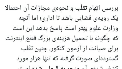 آذری جهرمی تقلب کنکور وزیر ارتباطات